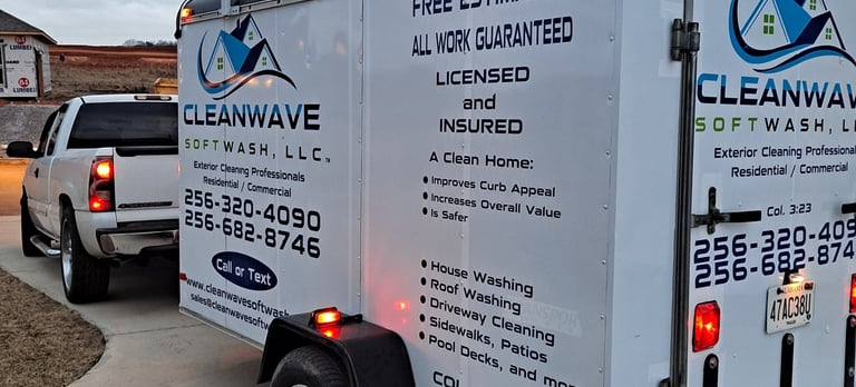 Cleanwave Softwash LLC proudly provides professional pressure washing and softwashing serving across Huntsville, Meridianville, Hazel Green, Madison County, and surrounding areas in North Alabama and Southern Tennessee.