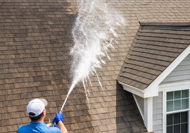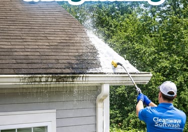 Low-pressure roof softwashing removes black streaks, algae, and moss while protecting your shingles and extending roof life.